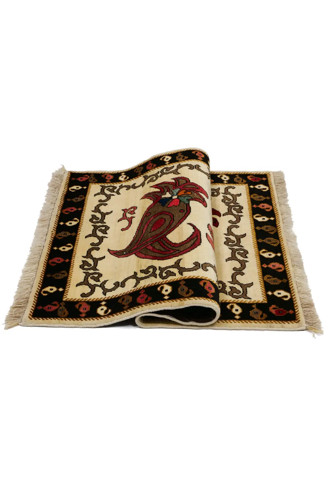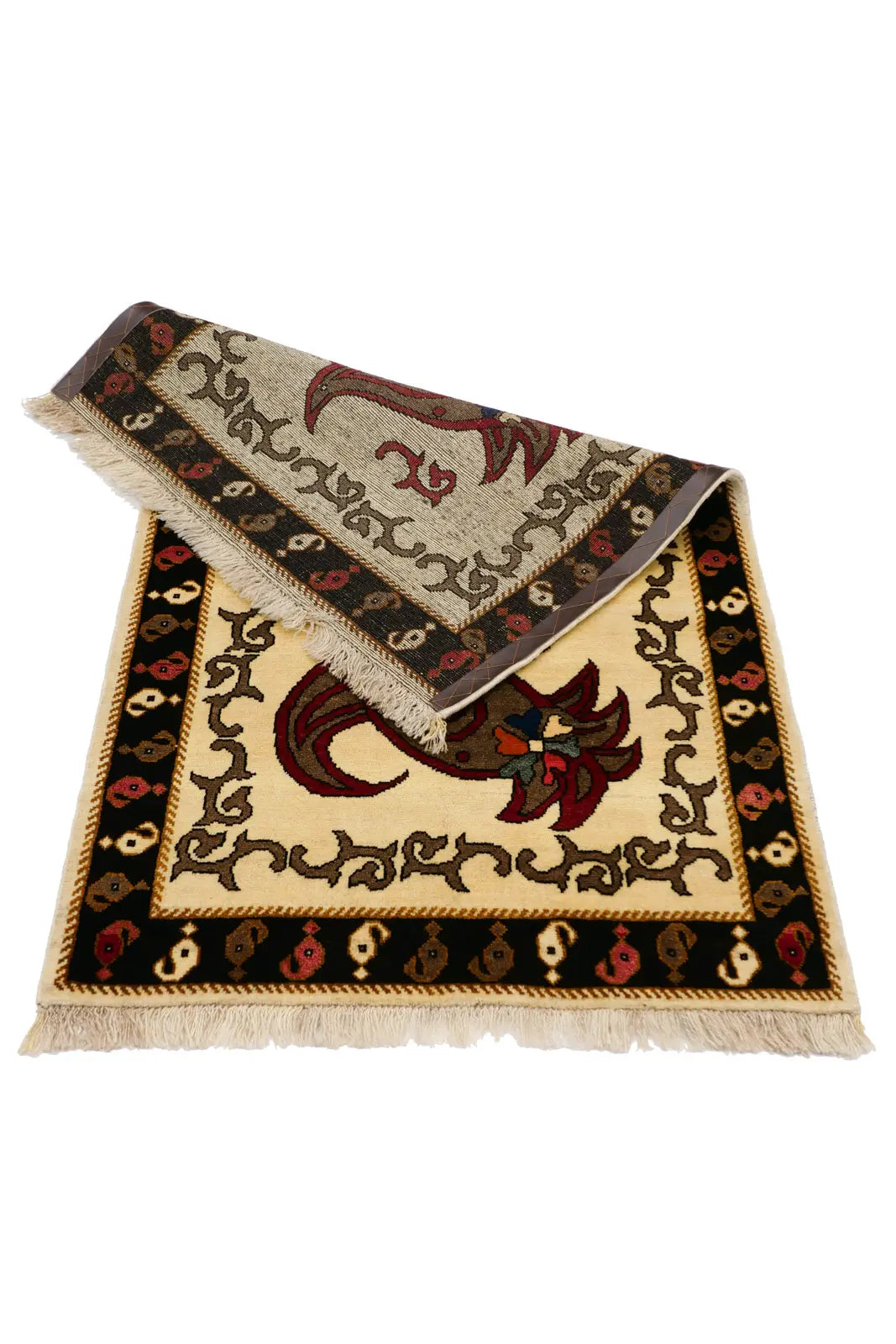 柔らかなナチュラルウールに描かれたペイズリー文様。シーラーズ産の上質な手織りギャッベ。