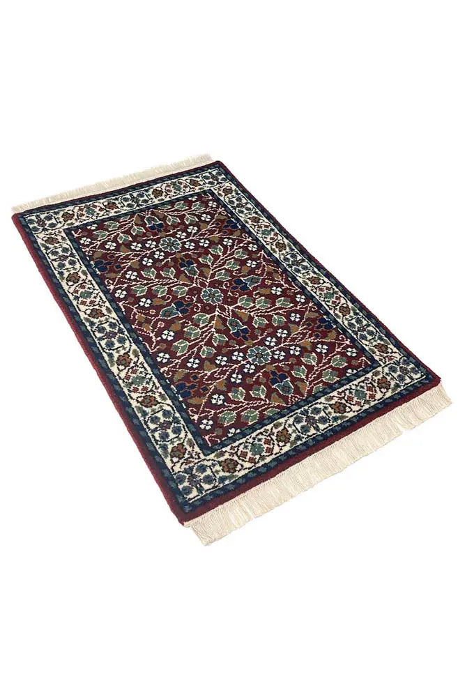 以酒紅色為底色,精緻的花卉圖案織造得細緻入微,呈現出美麗的作品。