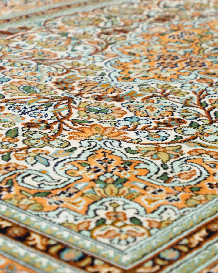 波斯丝绸地毯色彩鲜艳,而克什米尔丝绸地毯则带有温暖、复古的感觉,色调柔和。
