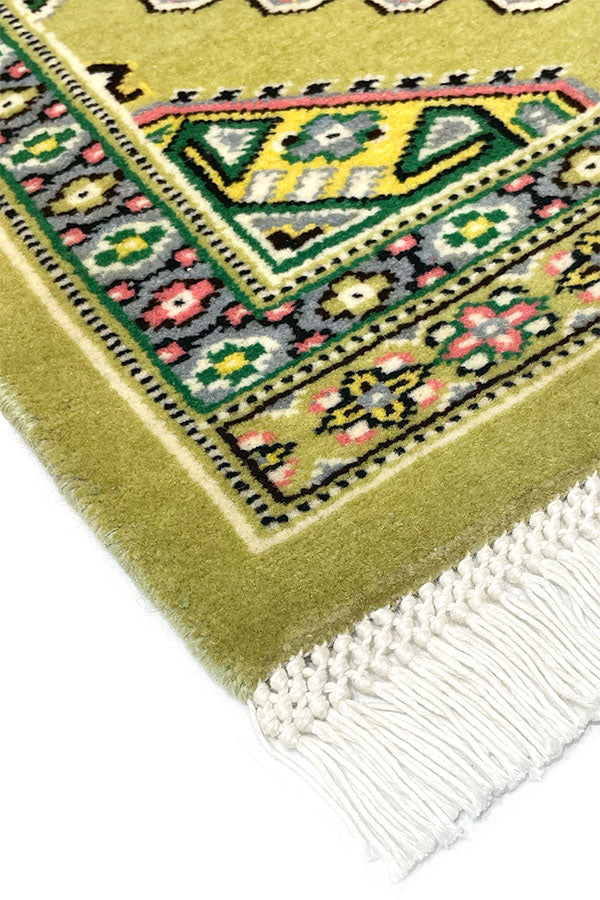経糸12本、横糸24本の密度で、通常のパキスタン絨毯(9本×16本)より格段に細かい、最高品質ランクです。
