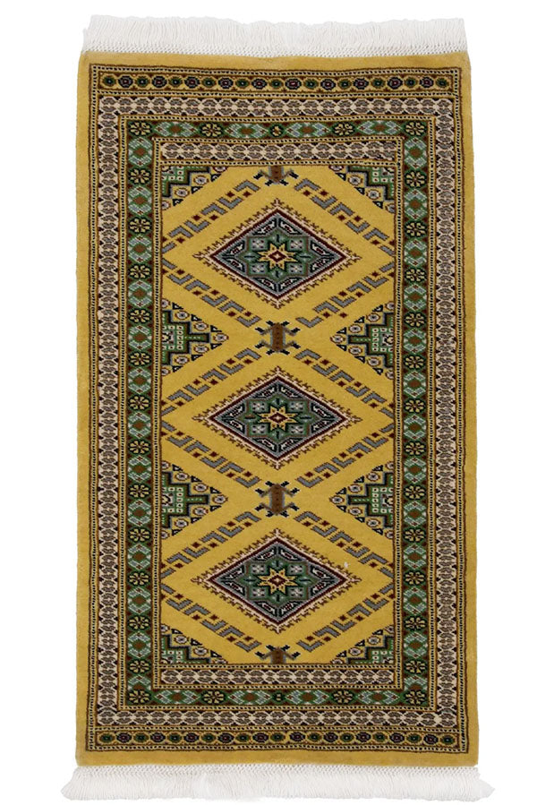 経糸12本、横糸24本の密度で、通常のパキスタン絨毯(9本×16本)より格段に細かい、最高品質ランクです。