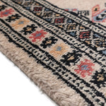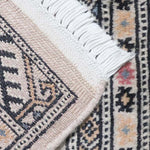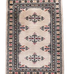 底色是浅米色。这是一个美丽的设计,具有巴基斯坦地毯独有的几何图案。