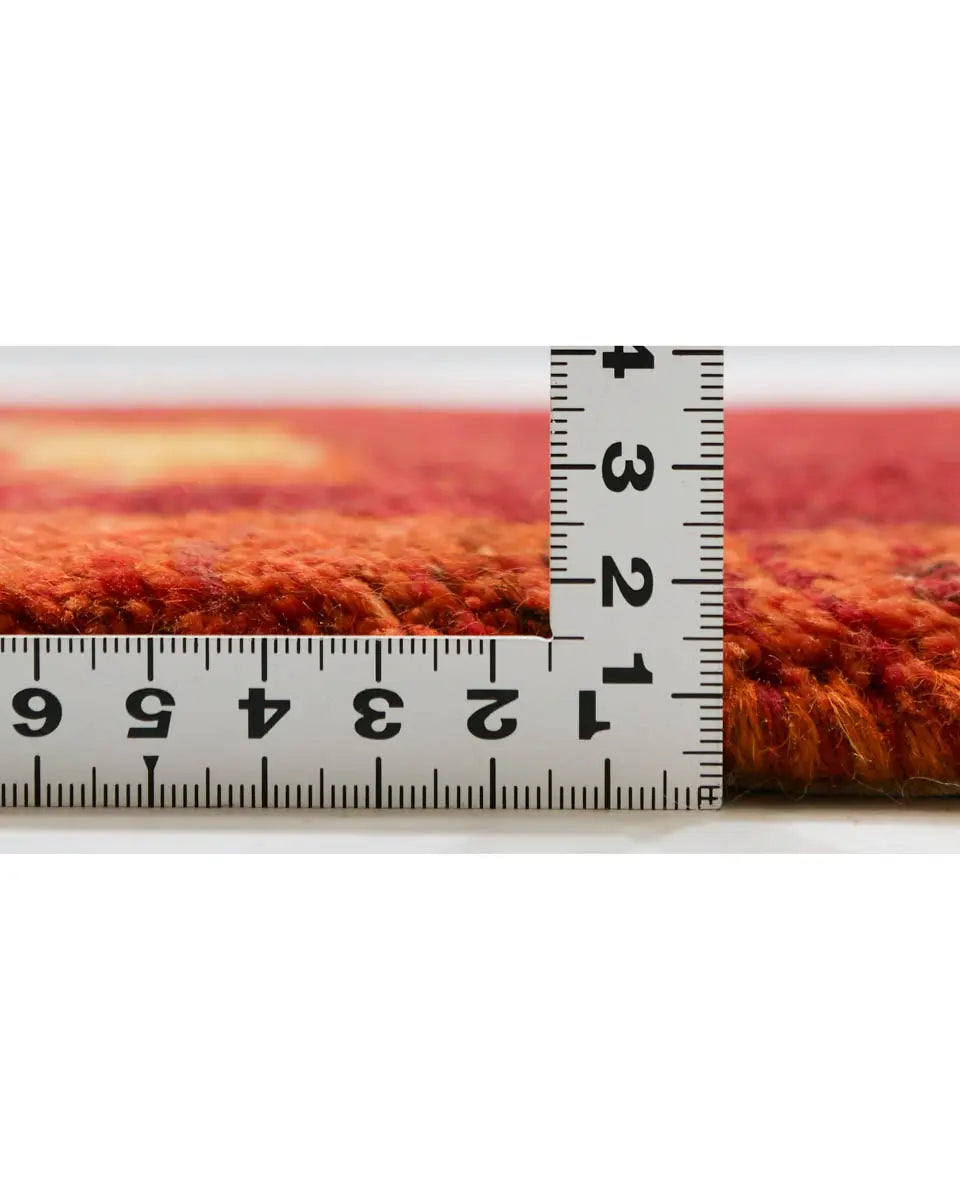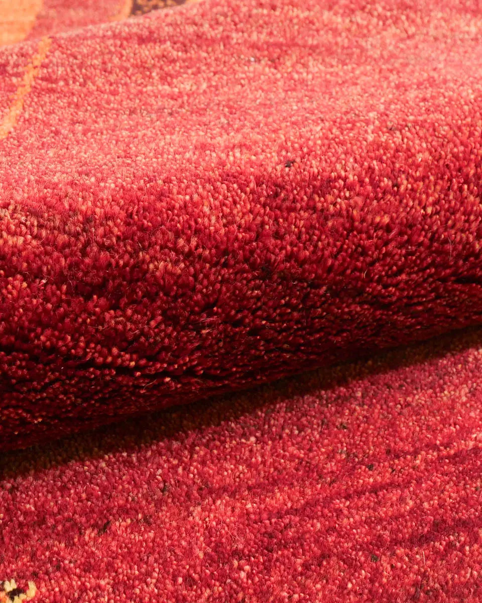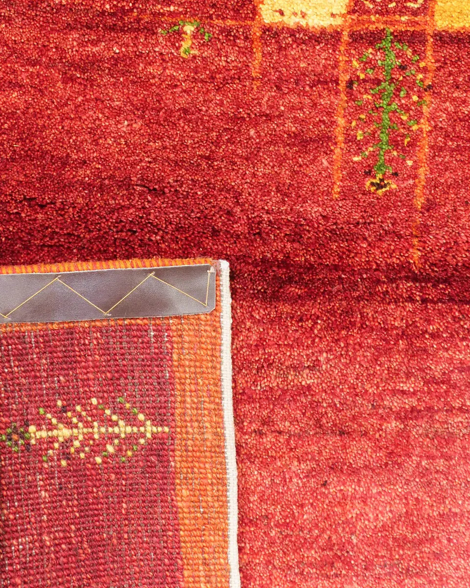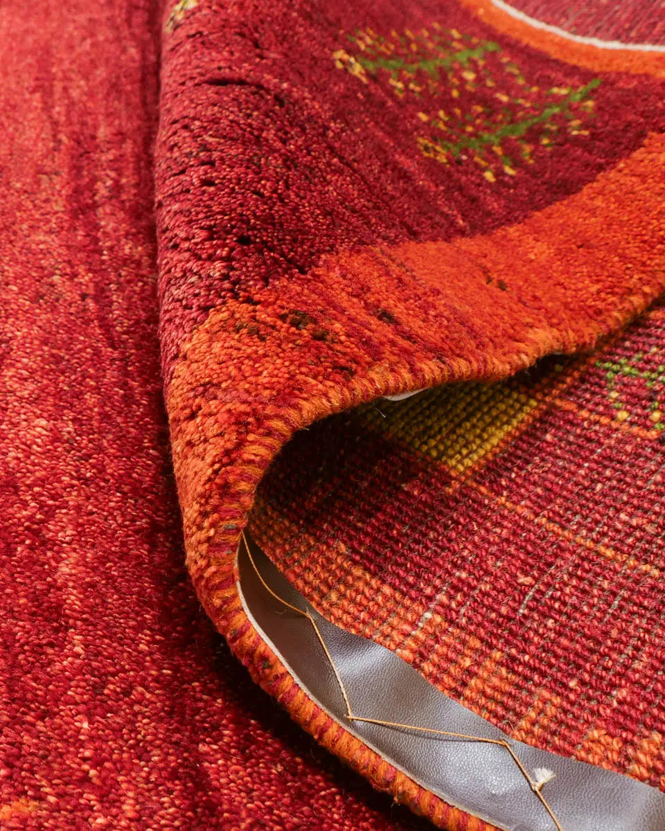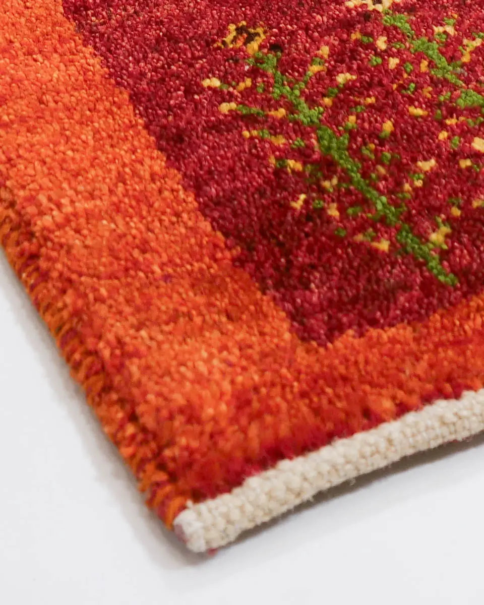 这是波斯 Gabbeh,在设拉子手工编织而成。底色是让人联想到日落的橙红色。