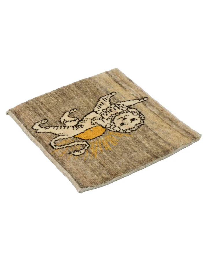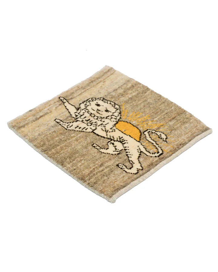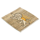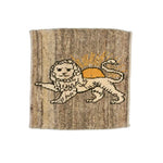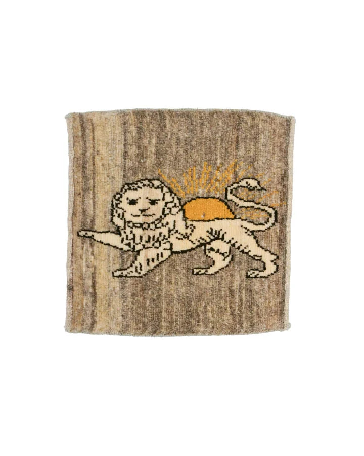 染色していない羊毛をベースに、太陽を背にしたライオンが織り込まれています。