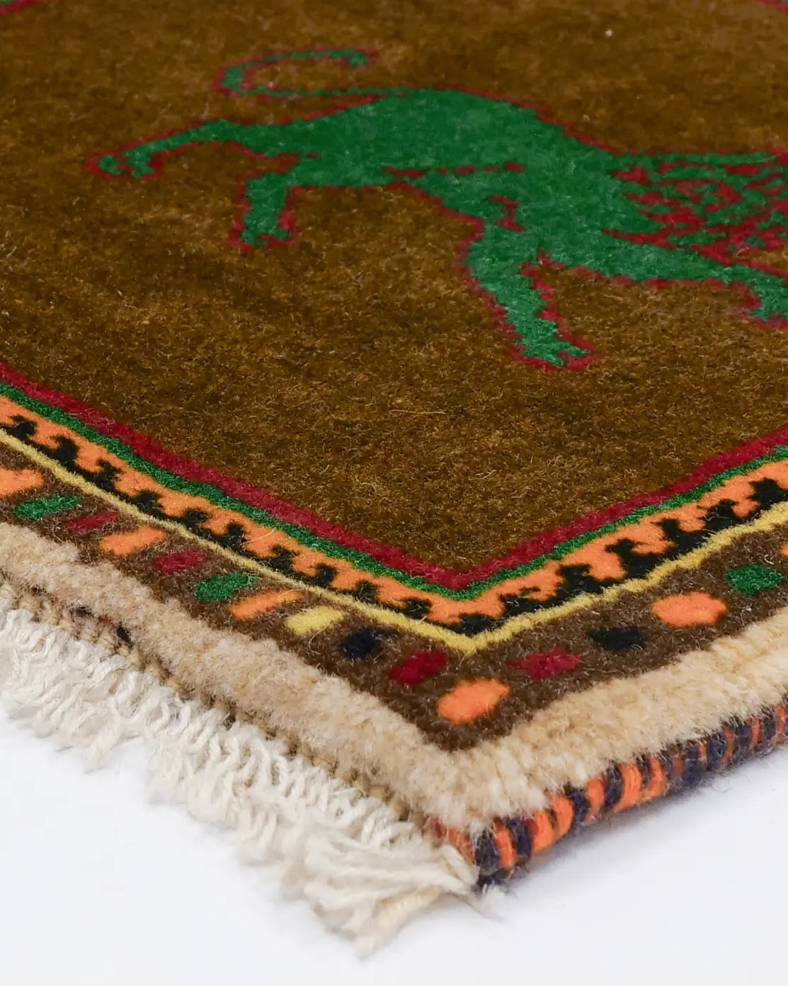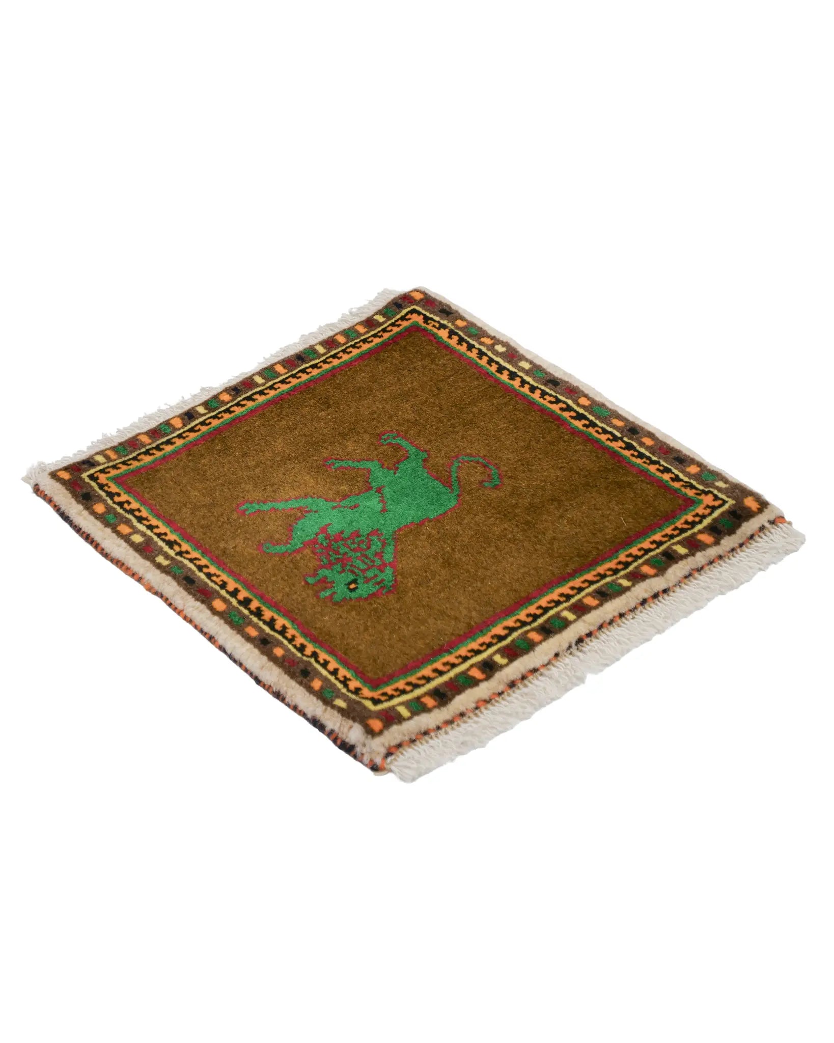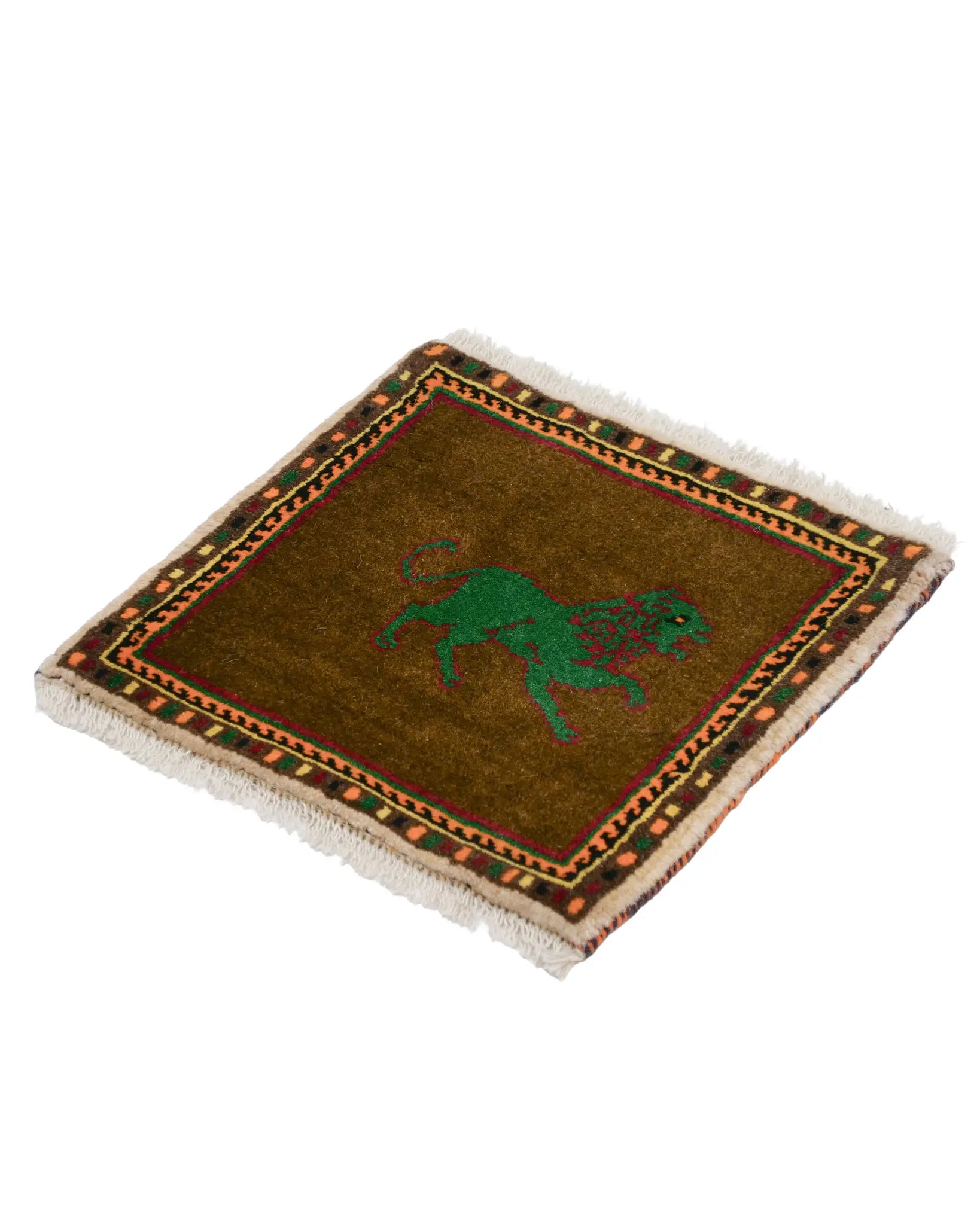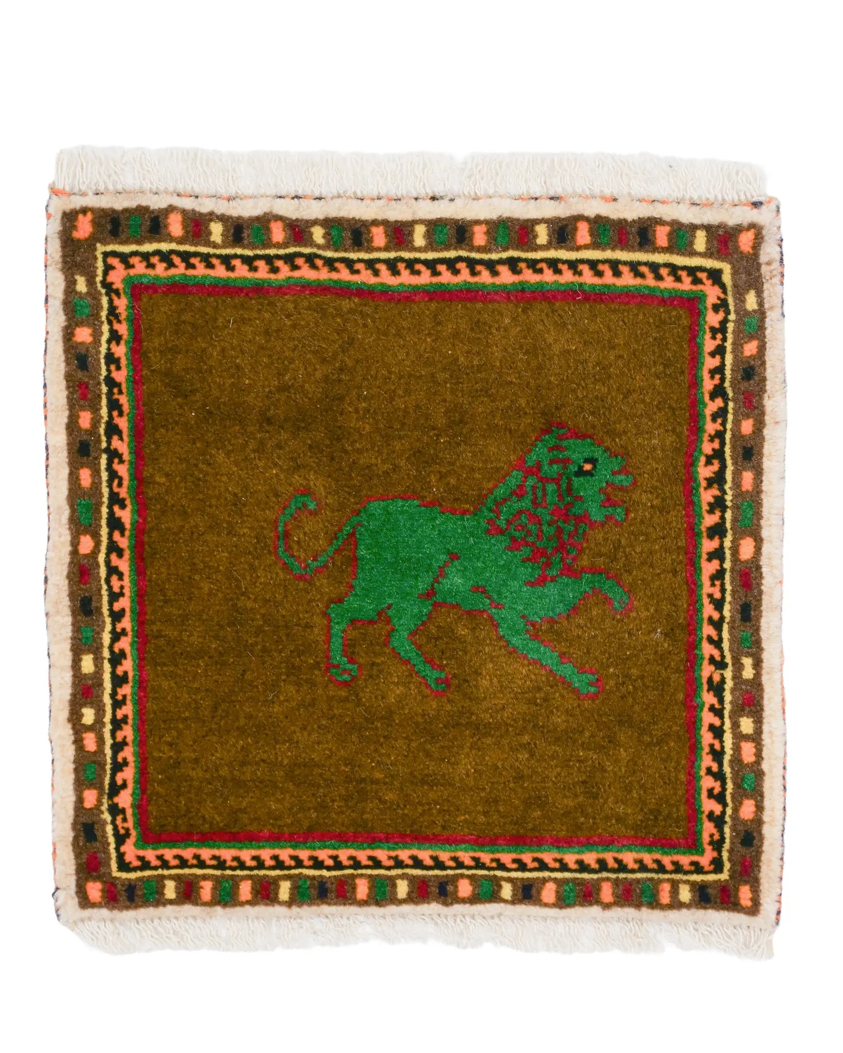 ライオンギャッベ 手織り 座布団 茶色 ブラウン ペルシャ絨毯 ウール ラグ
