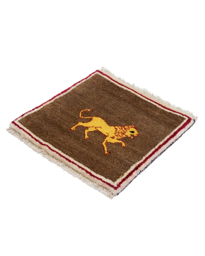 落ちついた色合いのブラウンをベースに、黃色のライオンが織り込まれています。