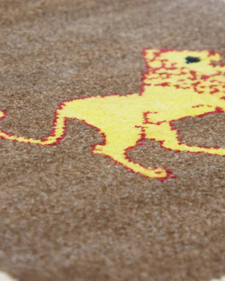織り手が思い思いに想像して描くため、表情や姿は一枚ごとに異なり、世界にひとつだけのユニークなライオンをお楽しみいただけます。