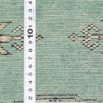 这块地毯是在巴基斯坦旁遮普省拉合尔手工编织的。底色是绿色和蓝色混合,巴基斯坦地毯特有的几何图案设计精美。