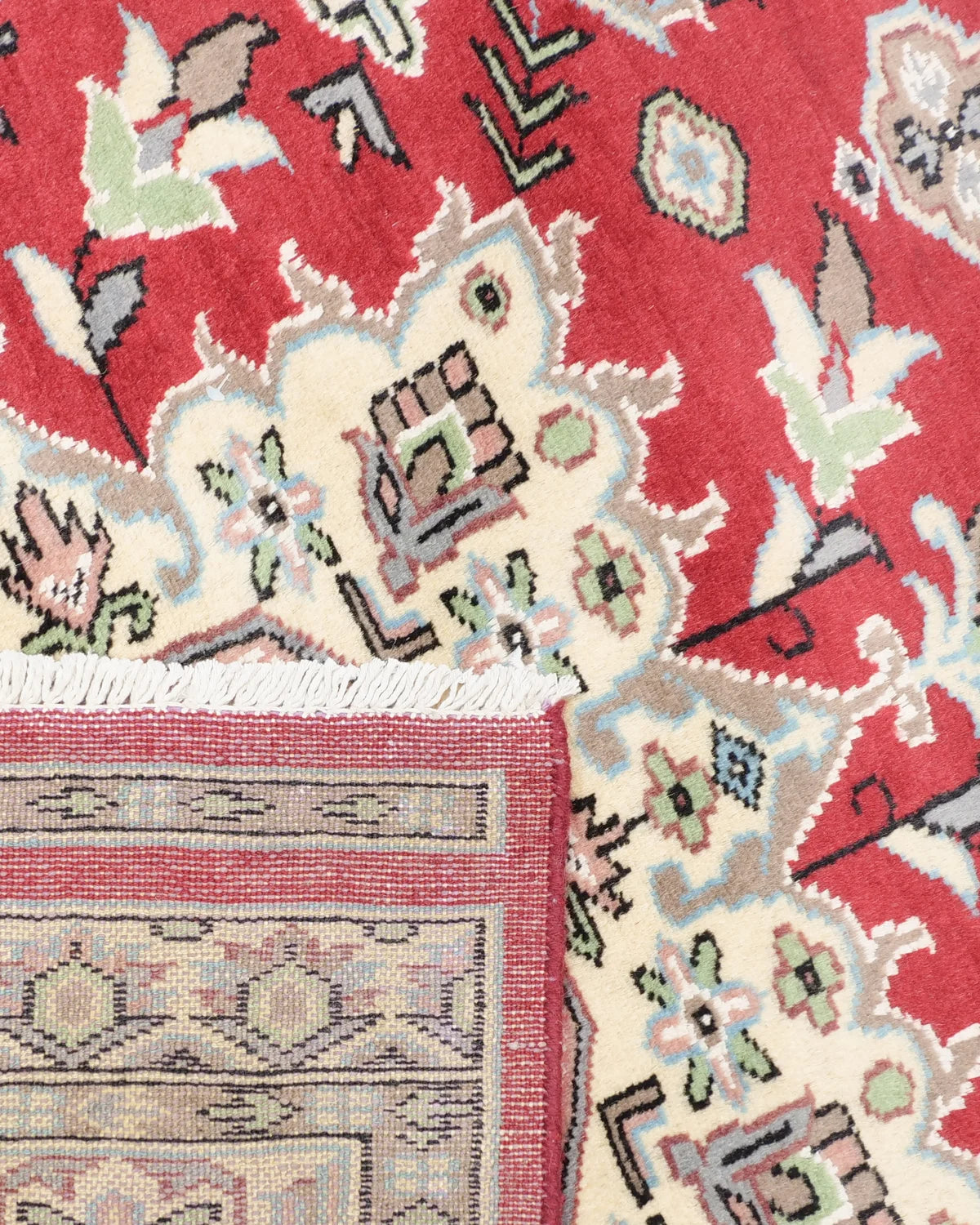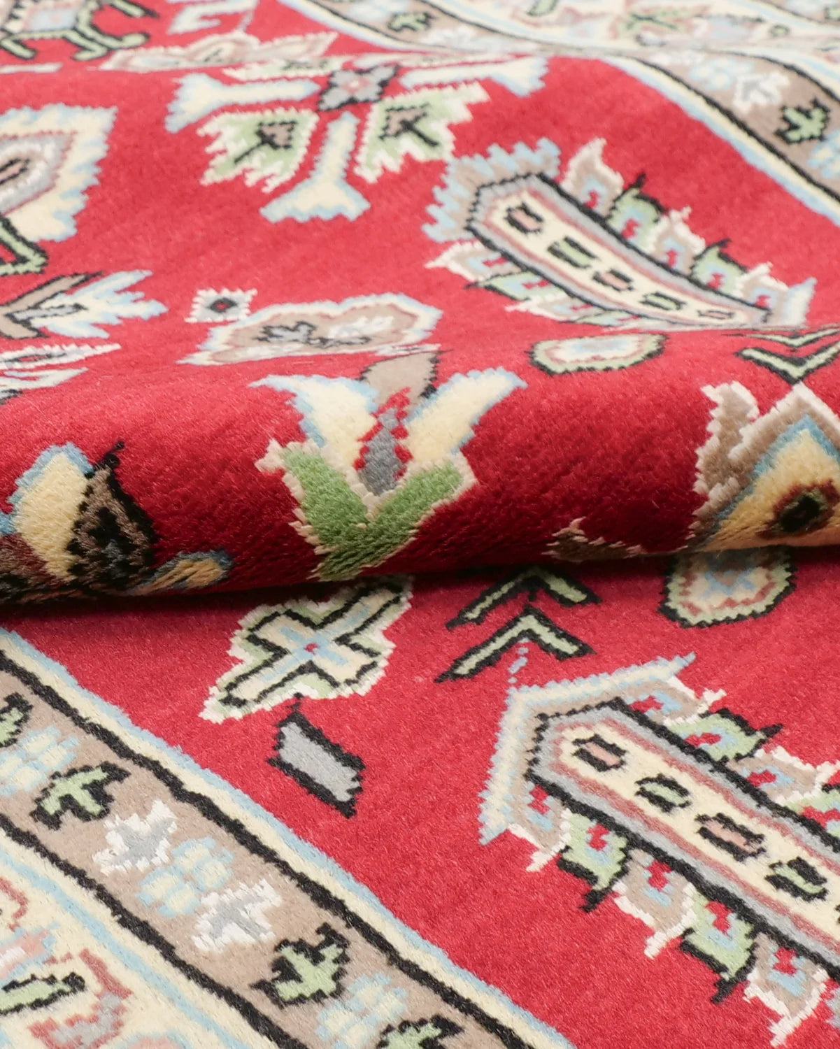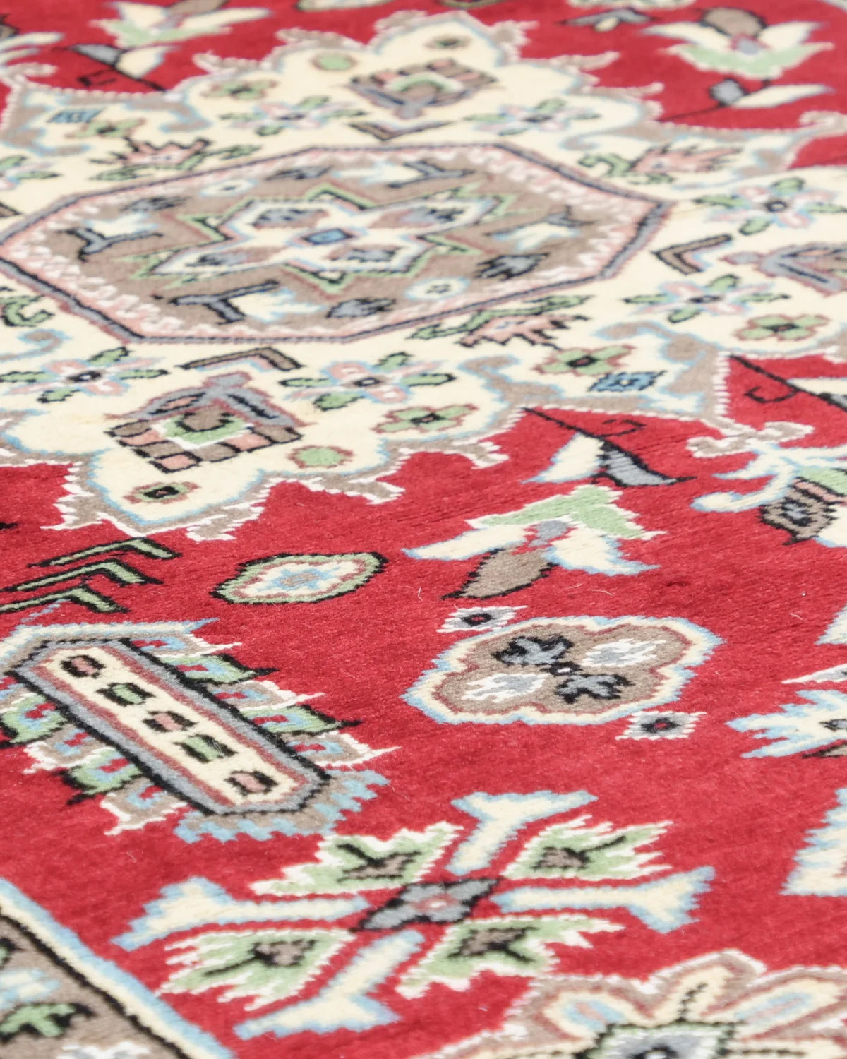 アイボリーの縁取りが映える、深紅のパキスタンウール絨毯