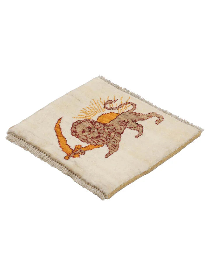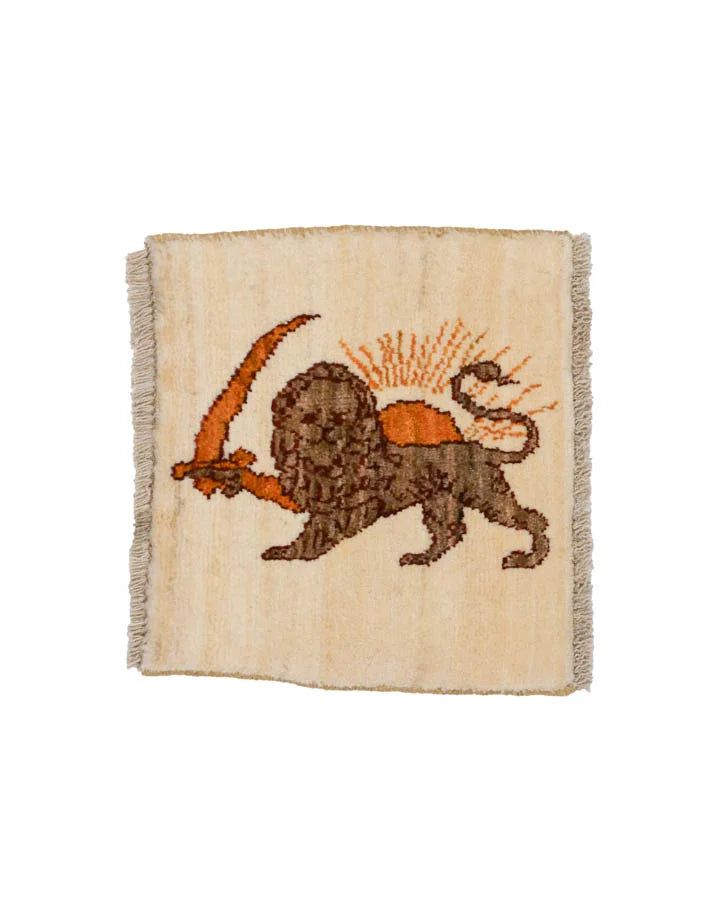 太陽を背に、愛嬌のあるライオンが織り込まれています。