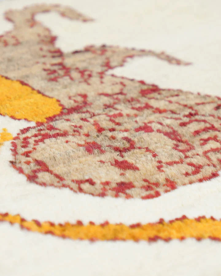 織り手が思い思いに想像して描くため、表情や姿は一枚ごとに異なり、世界にひとつだけのユニークなライオンをお楽しみいただけます。