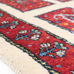 波斯设拉子地区手工编织的波斯 Gabbeh 地毯。这款 Kashkuri Gabbeh 采用最高品质的羊毛制成,比普通 Gabbeh 的羊毛更好,并且具有紧密编织的结构。