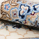 纳因的波斯地毯以柔软的羊毛和丝绸勾勒图案为特色,使其具有立体感。配色方案以米色为基础,并带有蓝色、绿色和象牙色等多种令人平静的颜色,非常适合日本家庭。