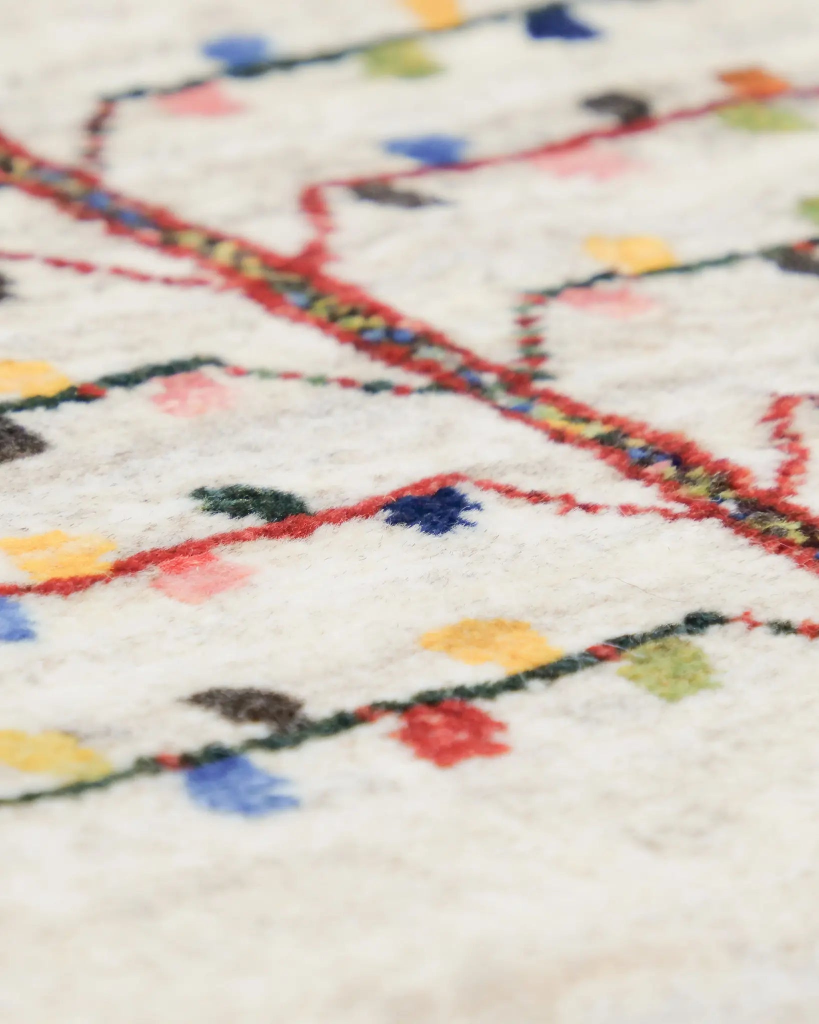 • 絨毯のお手入れは、定期的な掃除機がけで十分です。毛並みに沿って優しくかけ、フサ部分は避けてください。